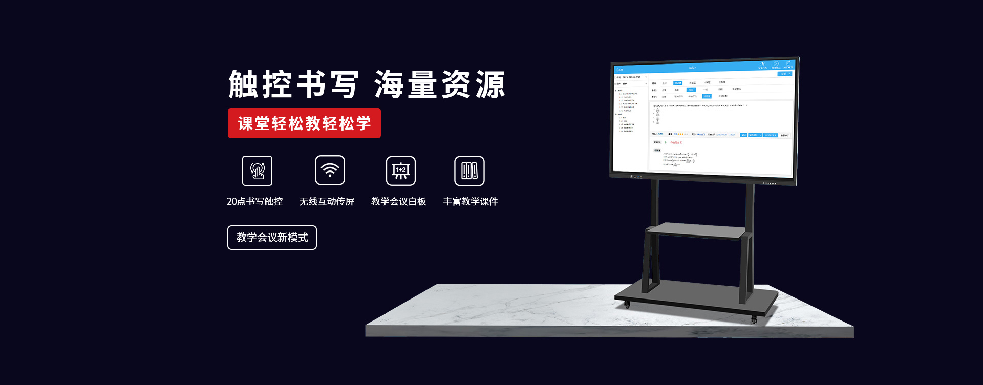 〔教育智慧黑板〕 是新一代教學顯示設備,具有高清顯示、高精度觸摸操作應用,黑板書寫教學功能與一身;內置安卓、windows系統(tǒng),可滿足教學不同的應用軟件使用;純平面書寫黑板,適應粉筆,無塵粉筆、水性粉筆書寫,適合不同環(huán)境應用;觸摸切換書寫黑板與屏幕顯示,可讓老師快速進行教學應用切換;純平面外觀,解決傳統(tǒng)推拉黑板的笨重,復雜的結構特點,大大提升了教師授課的體驗感和演示效果。